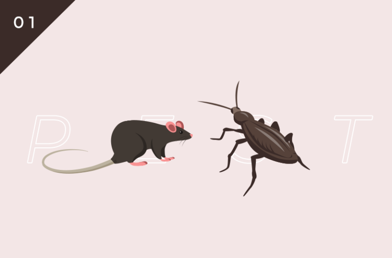 ダニやノミなどの害虫、またイタチなどの害獣(益獣)による被害は、アレルギーや呼吸器の病気を引き起こすなど、健康に害を及ぼす可能性があります。